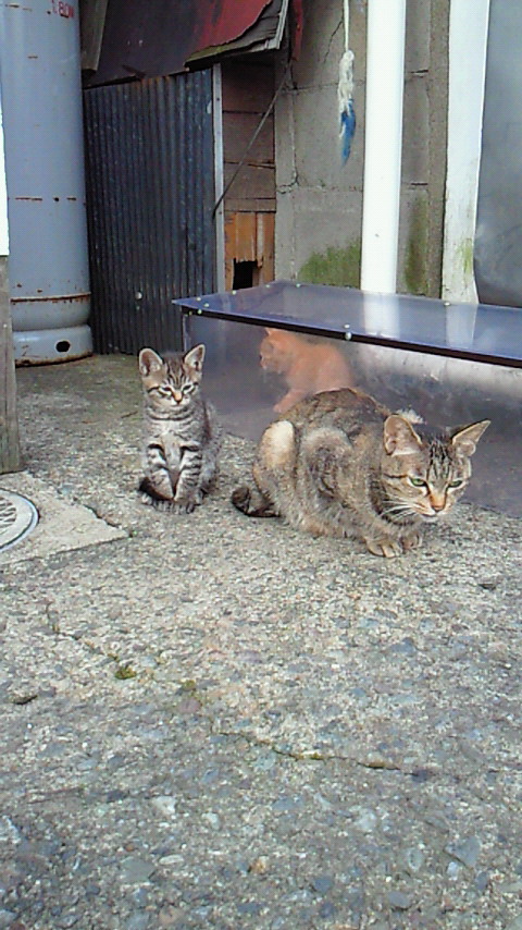 大きい黒縞のが母親で茶色の大きいのが父親みたいです。