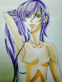 そして何故裸なのか?それはにぼしの持っているコピックの数が少なすぎて服に使えるような色が無かったからです。コピックは用意と後片付けがラクなのと発色が良いのはいいんですが、使える色が無いと絵にならない…いや、プロとかなら持っている色から発想して創造していくのでしょうが。もう考えるのがめんどうくさくて、ただ塗りたかっただけだから裸でいいやーって感じで。いや、もう描いてる人(にぼしが)がエロい人だからすみませんって感じで…あ、乳首塗り忘れてますねΣ(@_@)こ、ここはエロピンクで塗らないと!いや、冗談で言ってるんじゃなくて、まじで重要部分です。今回肌を青っぽく塗ったのでポイントとして赤みのある唇と乳首が重要だったのです…(にぼしの中では)
