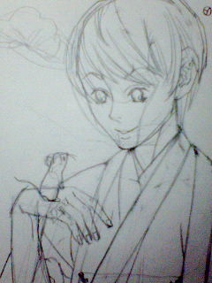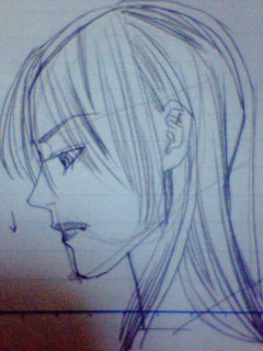 みみずくさんに応援を頂いて、久しぶりに絵を描くことにしました。しばらく描いてませんでしたね。たしかブログにはアップしてなかったかもしれないけど最後に落書きかなんかしたのが12月16日だったような…10日ぐらい描いてなかったんですね。で描いてみたんですが、久しぶりだったものでカンとかが狂ってるかなー、と思いましたが結構イケました(と自分では思うのですが)。横顔にも挑戦。どうでしょう?ちょっとアゴが長い?あ、ていうかこれ生首状態ですね、恐いな。