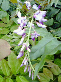 藤が狂い咲きしていました(画像参照)。今8月だぞ!?季節はずれにもほどがある。