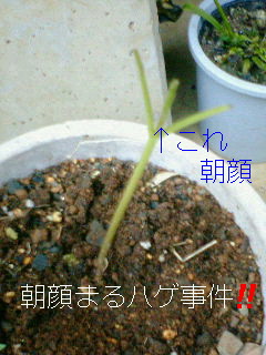 家に帰ってきたら、玄関先にある朝顔が……………………………引き抜かれている!?しかも葉がちぎられている!!まるハゲだ!一応植え直しておいたのだが…(画像)一体誰が!?犯人を考えていくと…玄関先にあって敷地内にあるから他の人は入れない。じゃあうちの誰かだ。しかし、そんなことやるやつはいない。…………………猫だ!猫がやったに違いない!つーかそれしかない…双葉を食べたっぽいぞ…植え直したけどこれ生き返るのかなぁ…まぁ、30植えたうちの2つだからいいんだが…